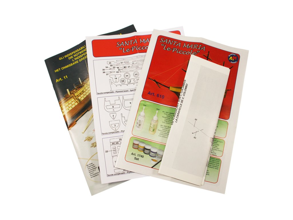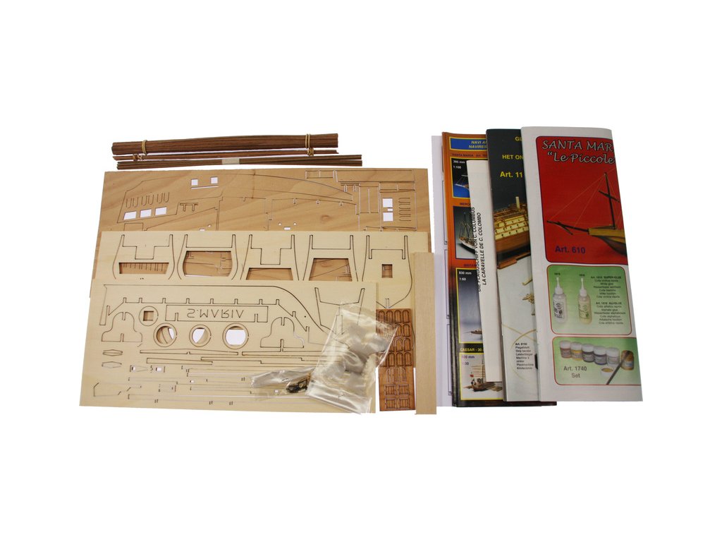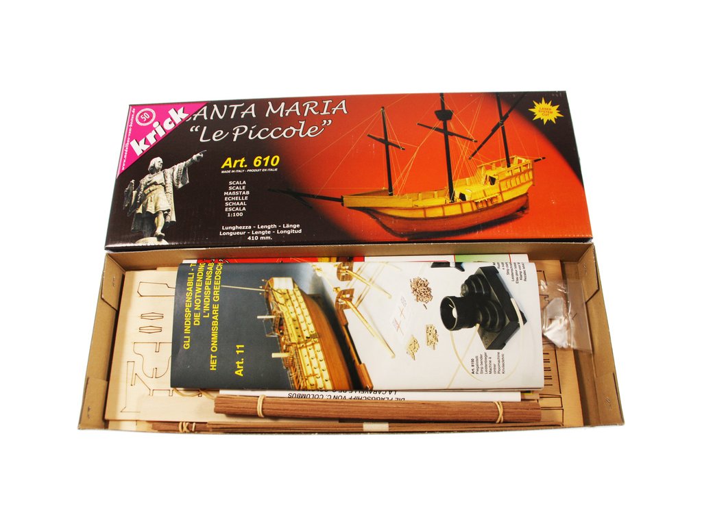 Stavebnice statického modelu lodi Mantua Model Santa Maria Le Piccole, v měřítku 1:100. Model vhodný pro začínající modeláře je zjednodušenou verzí a naučí vás základy stavby trupu, paluby i lanoví.