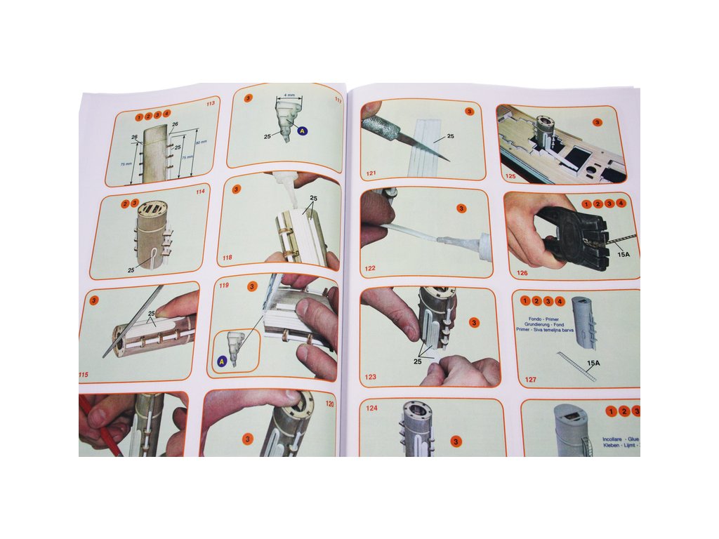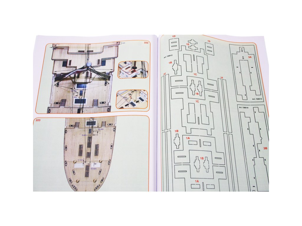 Set obsahuje kompletní sadu výkresové dokumentace modelu v měřítku 1:1 s obrázky jednotlivých detailů. Na výkrese jsou v měřítku nakresleny montážní sestavy, jejich kompletace a to včetně stěžňů a ráhen a způsob vázání lanoví. Vícejazyčný postup stavby rámcově upravuje logické sestavení jednotlivých komponentů.