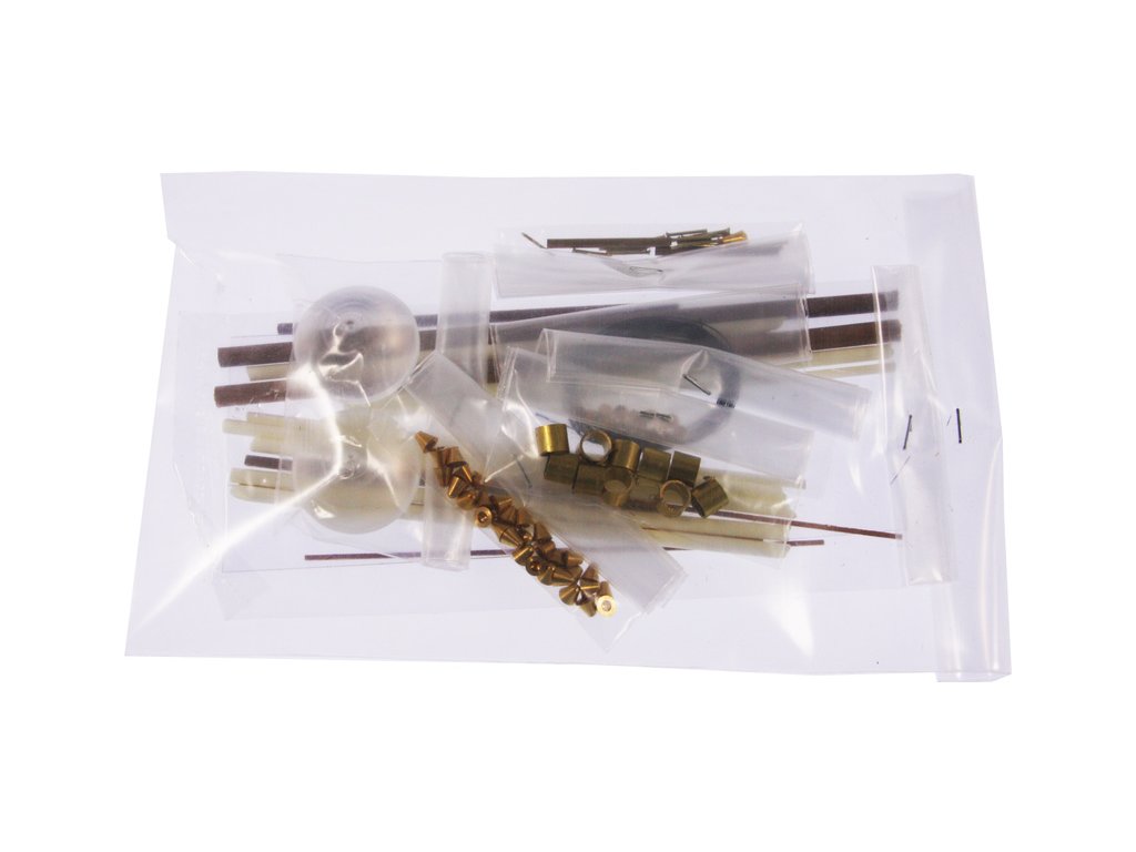 Balení obsahuje sadu překližkových dílů, sadu dřevěných lišt o různém průřezu, sáčky s drobnými díly, díly z mosazi, sadu výkresů a vícejazyčný manuál.