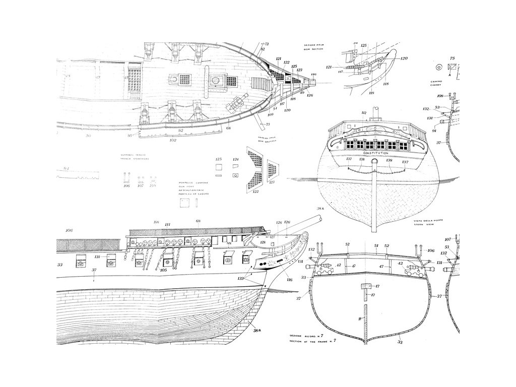 U.S.S. Constitution, americká fregata s 54 děly, byla poprvé spuštěna na vodu 21. října 1797. Měla větší rozměry, plachty a vybavení než lodě stejné třídy. Její silná konstrukce jí vynesla název „Old Ironsides“. Zúčastnila se několika námořních bitev, z nichž nejznámější bylo vítězství nad anglickou fregatou „Guerriere“ 19. srpna 1812, během války proti Velké Británii. Poté byla přeměněna na cvičnou loď a prošla různými úpravami. V současné době je kotvena v loděnici amerického námořnictva v Bostonu a slouží jako námořní muzeum.