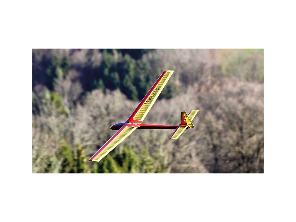 RC model letadla v retro stylu, Marabu 6 o rozpětí 2,3m Kit, jako stavebnice k sestavení. Lze jej postavit jako větroň do termiky bez pohonu, buď na svah za mírného větru nebo startovat vlekem šňůrou či gumicukem. Model můžete vybavit i elektro pohonem. Dřevěná stavebnice je určena pro začátečníky i pokročilejší. Marabu 6 je skutečný retro model a konstrukce pochází z počátku 70. let.