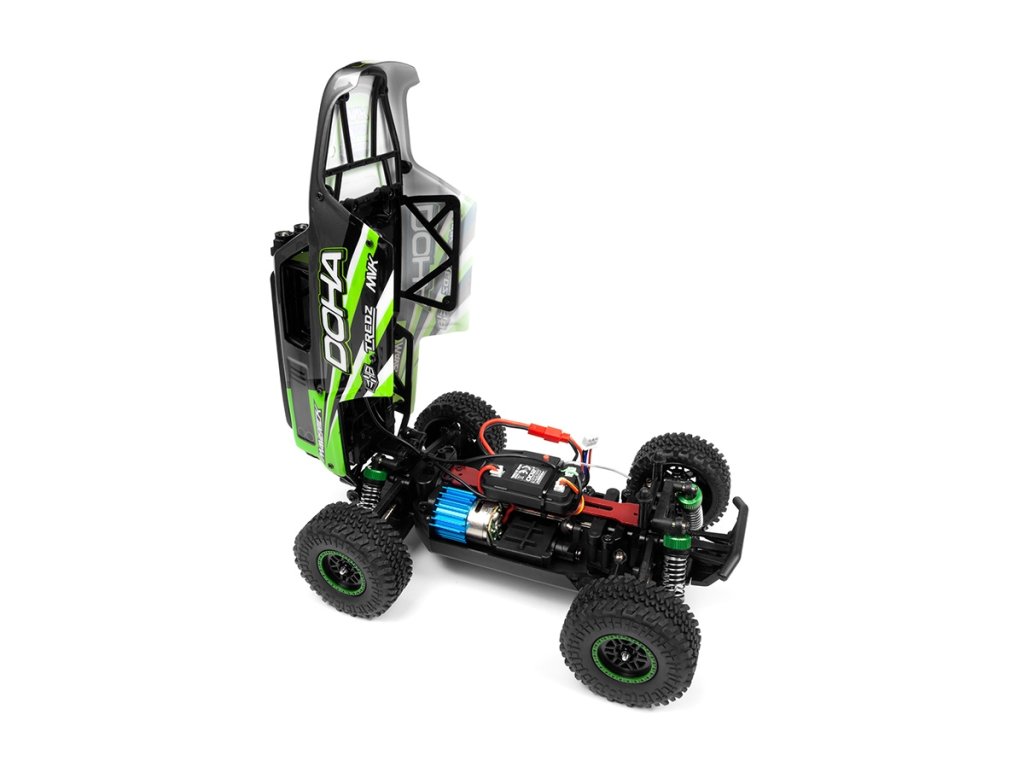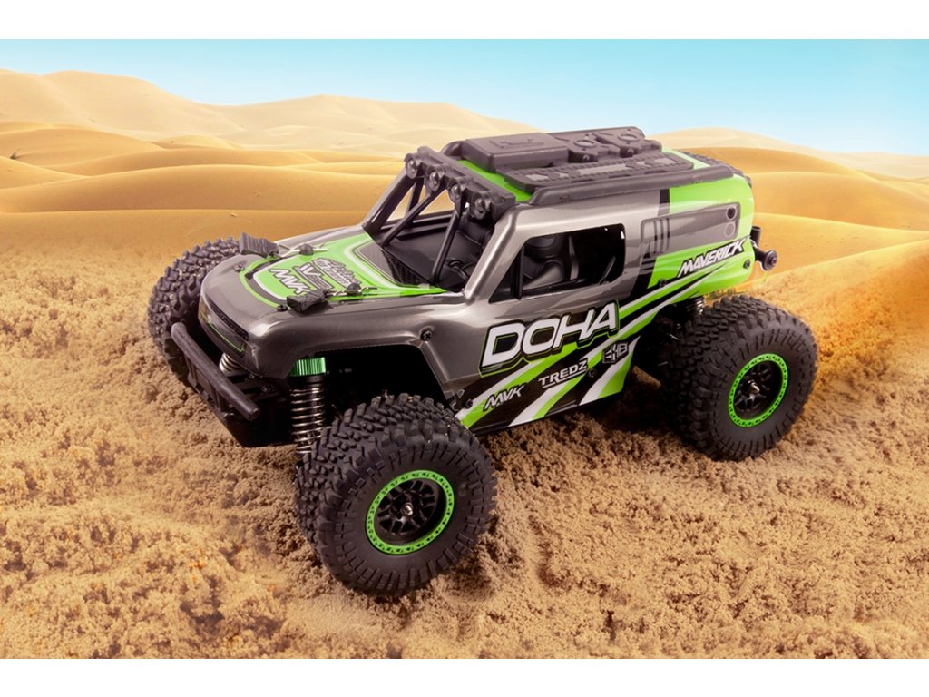 DOHA má odolný hřídelový pohon a planetové diferenciály, které zajišťují optimální rozdělení výkonu pro výjimečnou stabilitu a přesné řízení v různých terénech. Jeho zesílená konstrukce spolu s originální potištěnou výklopnou karoserií Desert truck nejen zvyšuje jeho vizuální přitažlivost, ale také umožňuje snadný přístup k pohonnému akumulátoru. Model DOHA je k dispozici ve čtyřech výrazných barevných variantách.