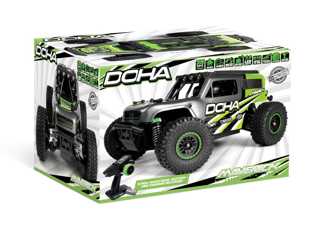 Součástí balení modelu DOHA je 600mAh li-ion akumulátor Maverick Element, praktický USB nabíječ, 2,4GHz rádiový systém MTX-201, voděodolný 2v1 přijímač/regulátor MSRS-201. Model DOHA je navíc vybaven střešními LED světly, která umožňují provoz za zhoršených světelných podmínek.