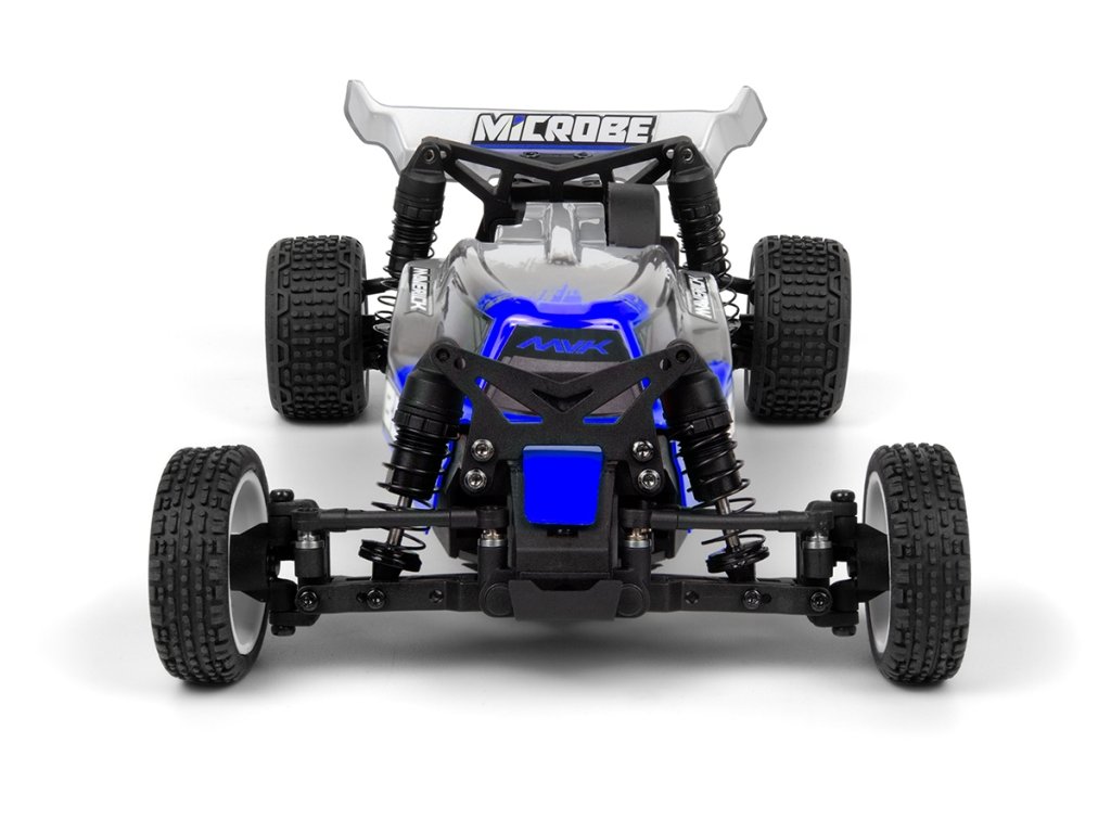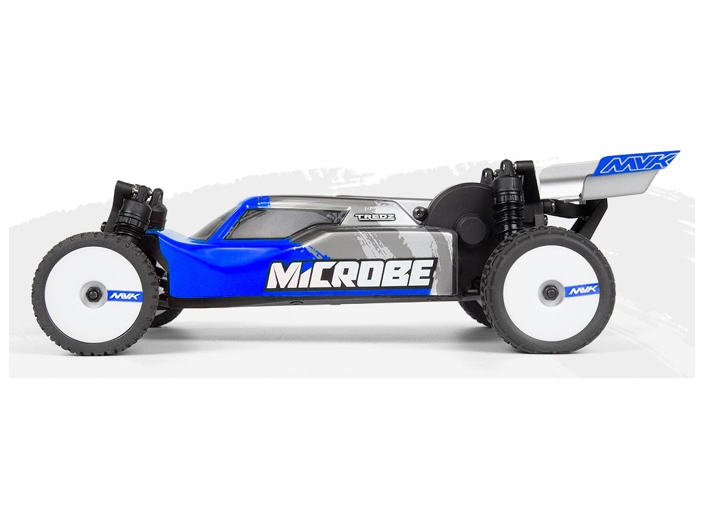 Elegantní 1,5 mm eloxované hliníkové plato podvozku, osazení kuličkovými ložisky a plynulá 3kolová zadní převodovka společně dodávají modelu Microbe stabilní a přesný pocit z jízdy. Přidejte olejové tlumiče a odvětrávaná kola s pěnovými vložkami a získáte malou buggy, která miluje zatáčky, pohlcuje nerovnosti a s jistotou vystřeluje ze zatáček.