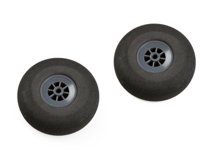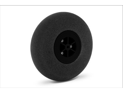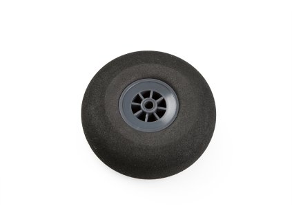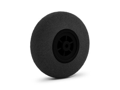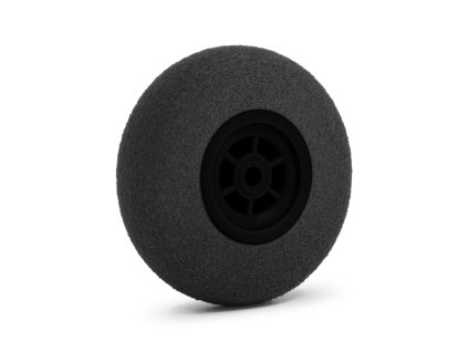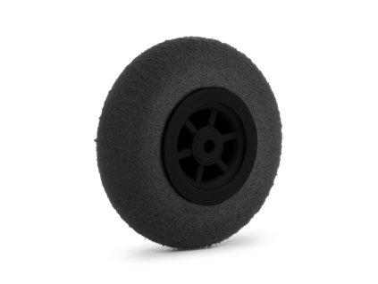 Lehké mechové kolo 64 mm s pneumatikou z mikroporézního materiálu s minimální deformací váhou letadla i při dlouhodobém stání na místě.