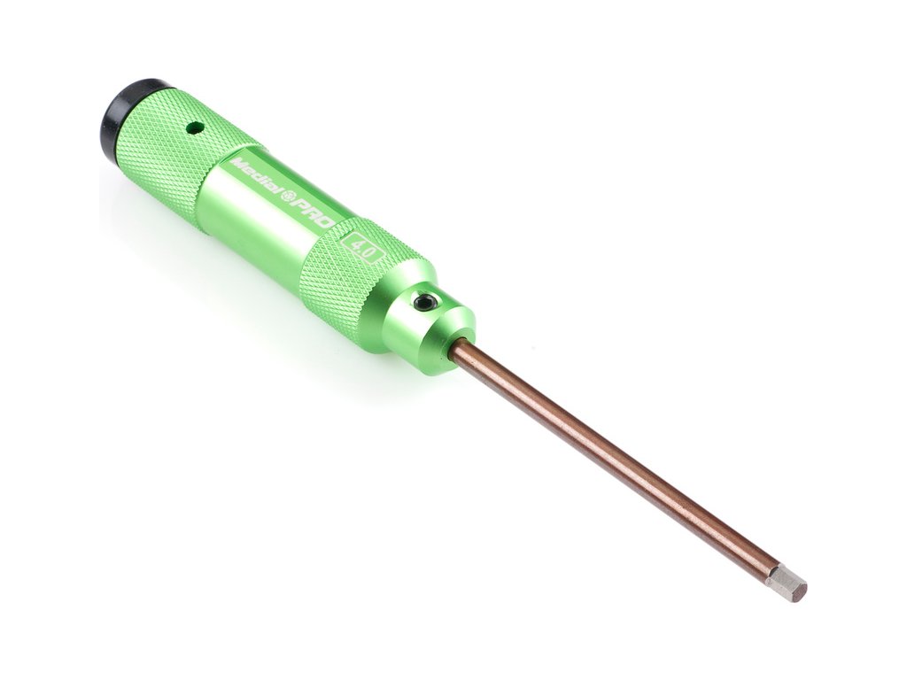 Kvalitní CNC imbus šroubovák Medial Pro o velikosti 4.0 mm má hliníkovou rukojeť o délce 97 mm a průměru 21 mm s gumovou opěrkou a dřík o délce 83 mm. Atraktivní balení v plastové krabičce.