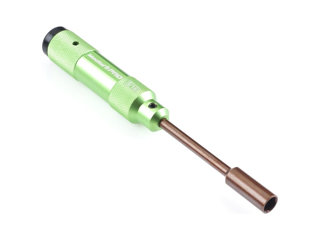 Medial Pro - šroubovák nástrčkový US 5/16" nejvyšší kvality nejen pro RC auta. Pracovní část je vyrobena z pevné oceli, hliníková rukojeť o délce 97 mm a průměru 21 mm s gumovou opěrkou a dřík o délce 82 mm . Atraktivní balení v plastové krabičce.