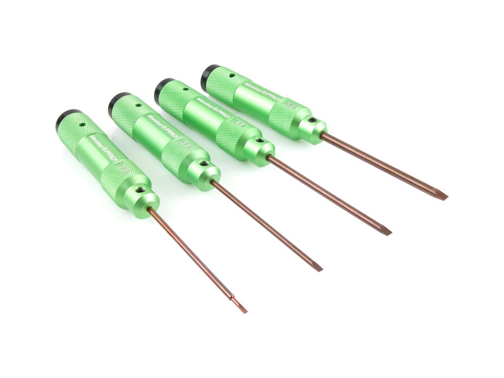 Sada kvalitní CNC plochých šroubováků Medial Pro o velikostech 2.0, 3.0, 4.0 a 5.0 mm má hliníkovou rukojeť o délce 97 mm, průměru 21 mm s gumovou opěrkou a dřík o délce 83 mm. Atraktivní balení v plastové krabičce.