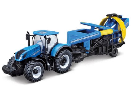 Model zemědělského traktoru Bburago 18-31656 - New Holland T7.315 s přívěsem. Je vyroben z kovových a plastových dílů. Model má pryžové kolečka na setrvačník, odjímatelnou...
