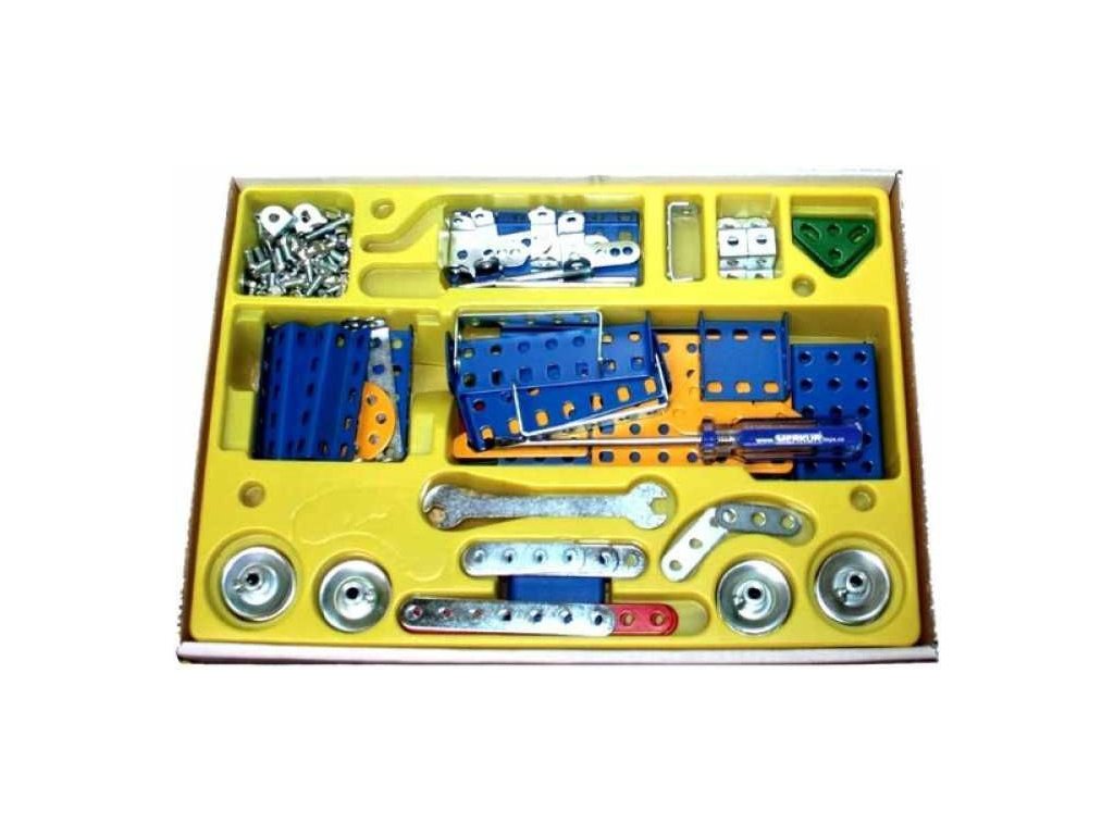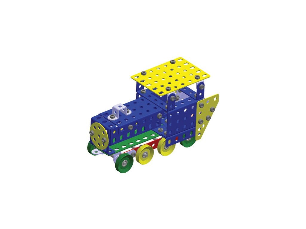 Z této jednovrstvé stavebnice se dá sestavit 10 různých modelů, např. lokomotivu, nákladní vagón a několik dalších železničních modelů. Stavebnice obsahuje 220 dílků včetně návodu a nářadí. Vhodné i pro děti, které s Merkurem začínají. Se sestavenými modely si lze hrát, jsou velmi odolné.