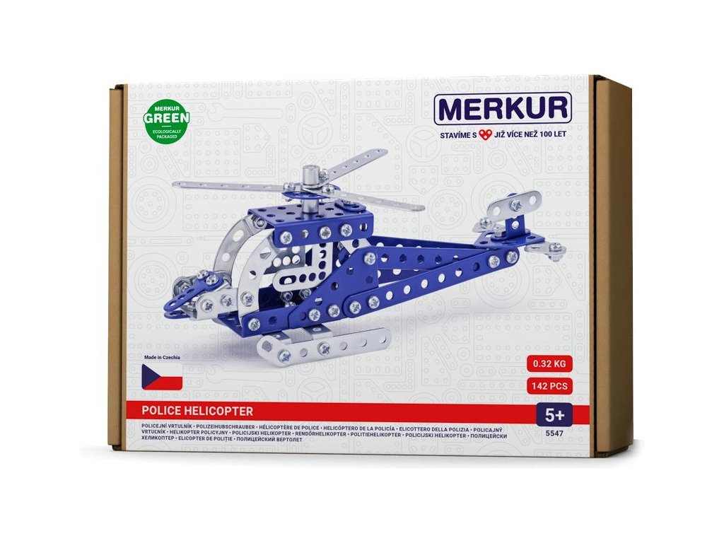 Stavebnice Merkur - Policejní vrtulník. V balení najdete podrobný návod, Merkur sadu nářadí a unikátní Merkur díly. Merkur díly jsou univerzální a tak vás neomezí v jakékoli modifikaci a nápadu. Stavebnici tak můžete sestavit podle návodu nebo podle svých představ.