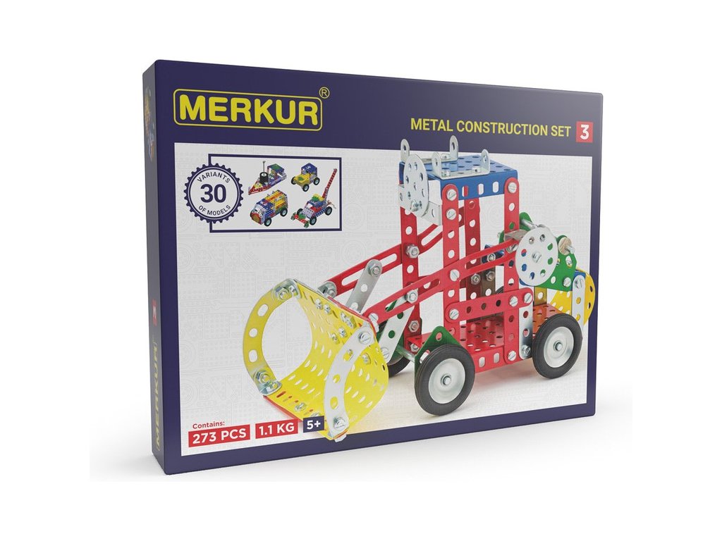 Česká konstrukční stavebnice pro malé i velké montéry. Merkur velká sada 3 obsahuje 273 dílků a návod na stavbu 30 modelů. Vhodné pro děti od 5 let.