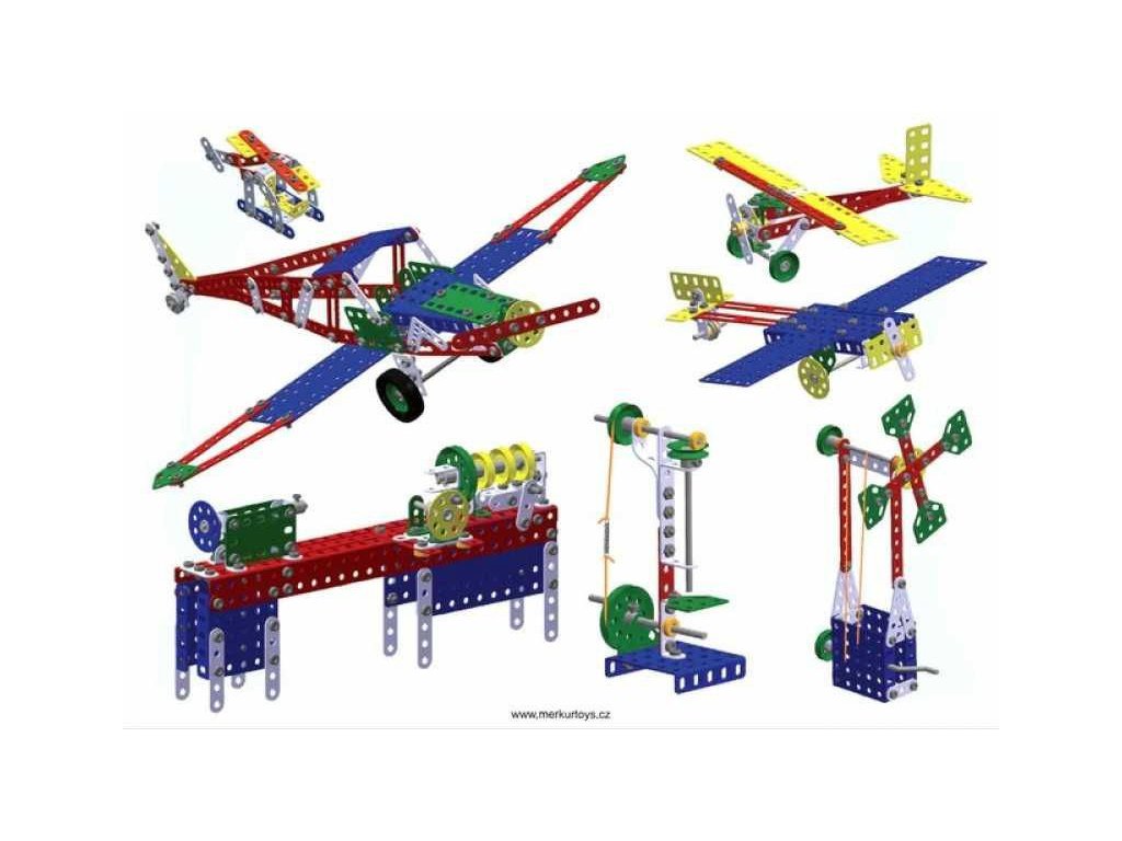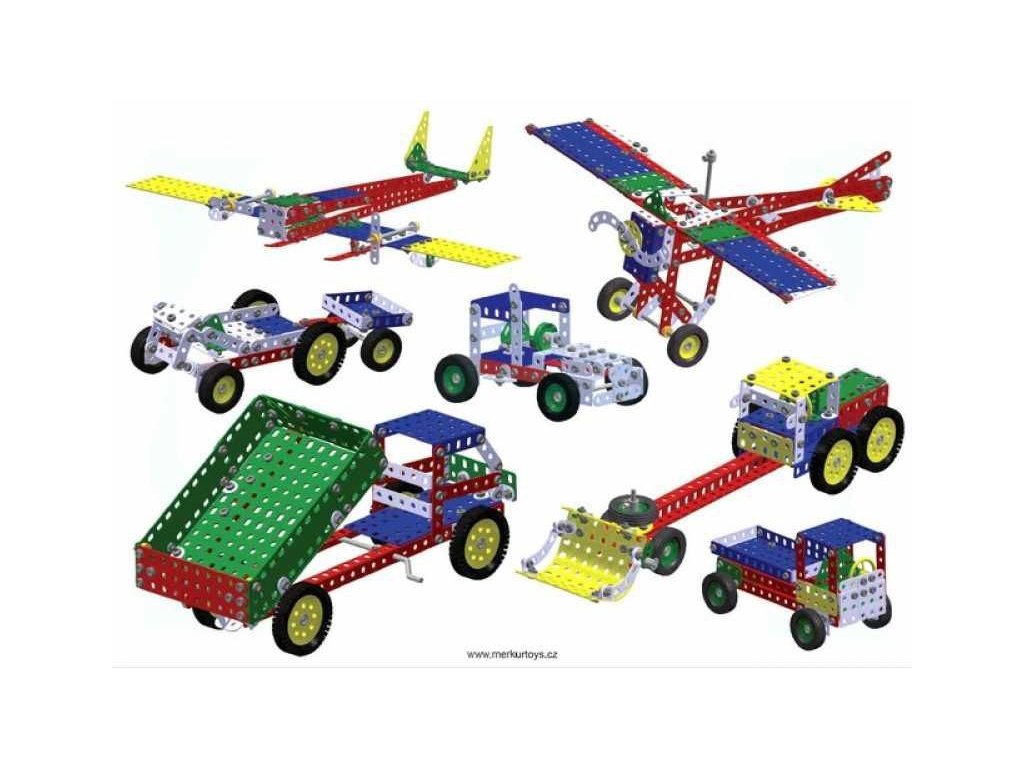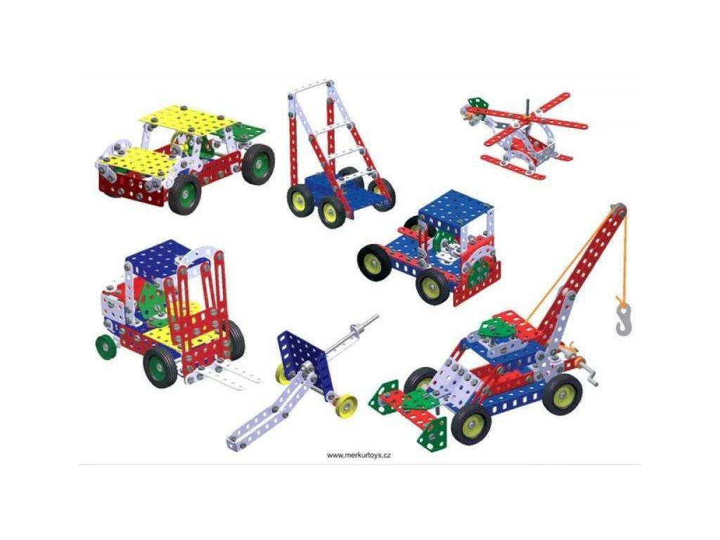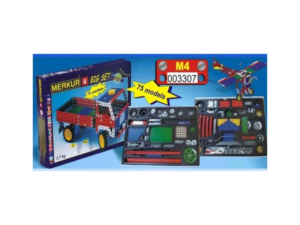 Česká kovová stavebnice MERKUR velká sada 4 je univerzální velká stavebnice, která obsahuje mimo základní sestavu dílů také součástky nutné pro stavbu nákladních automobilů, formulí a letadel. Obsahuje 609 dílků. Vhodné pro děti od 5 let.