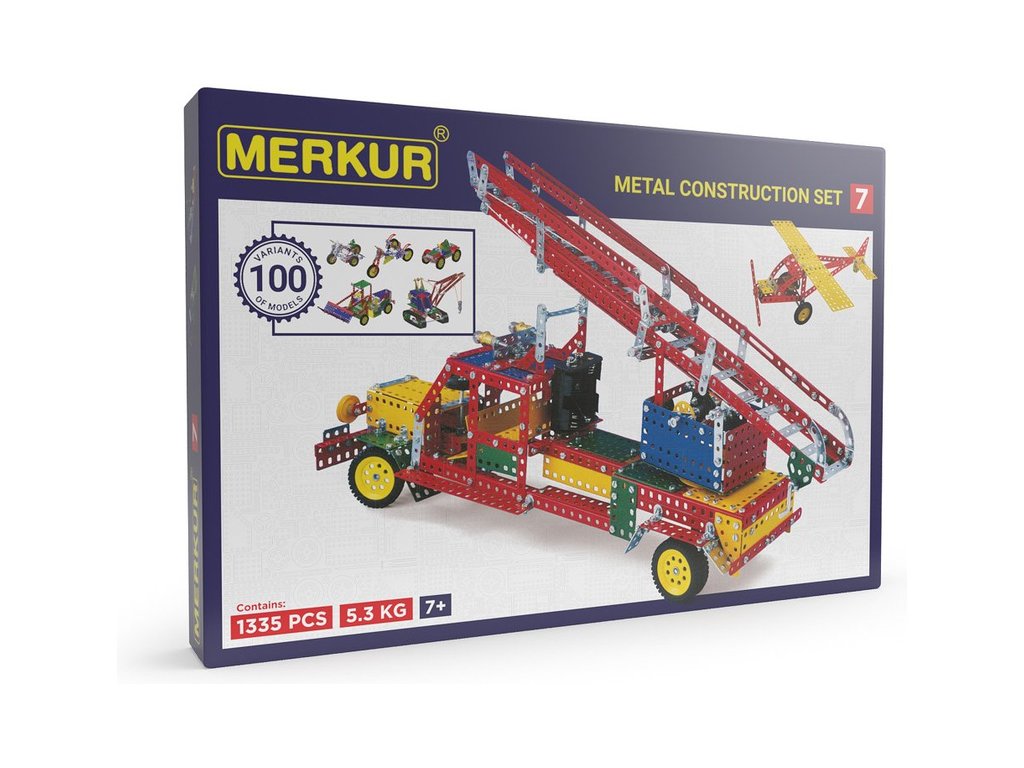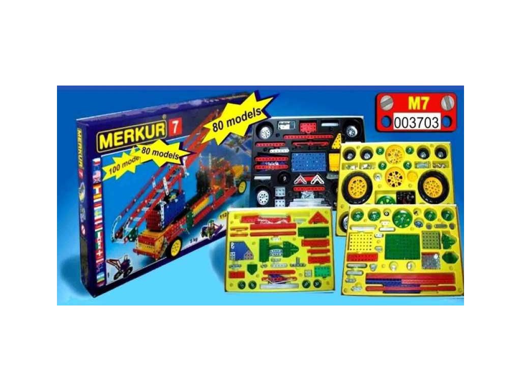 Merkur 7 stavebnice je velká čtyřvrstvá klasická stavebnice. Obsahuje základní sestavu součástek a k tomu navíc další součástky pro stavbu velkého požárního auta, velkých jeřábů a dalších modelů. Součástí stavebnice je velká návodová knížka.