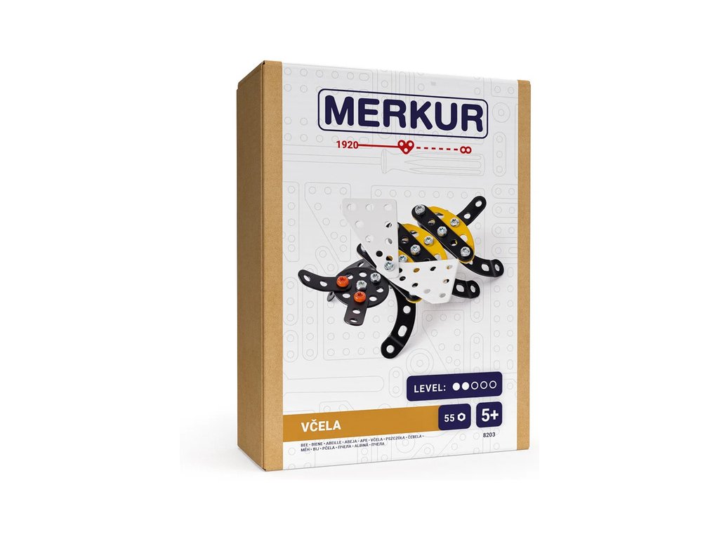 Klasická česká stavebnice Merkur - Včela. V balení najdete podrobný návod, Merkur sadu nářadí a unikátní Merkur díly. Merkur díly jsou univerzální a tak vás neomezí v jakékoli modifikaci a nápadu. Stavebnici tak můžete sestavit podle návodu nebo podle svých představ.