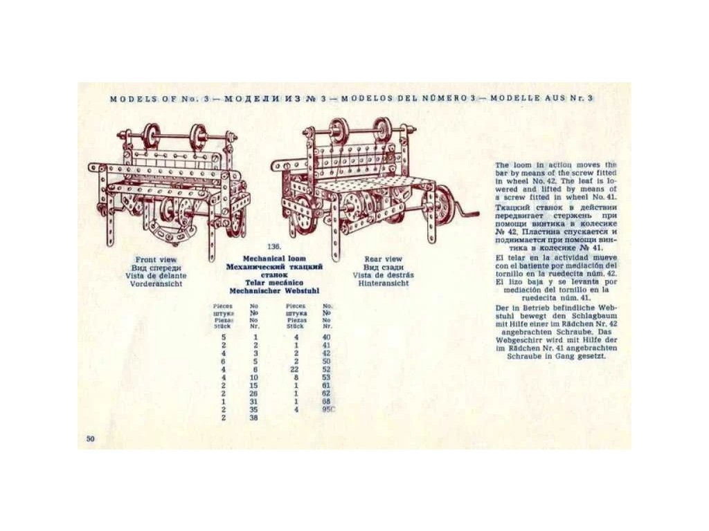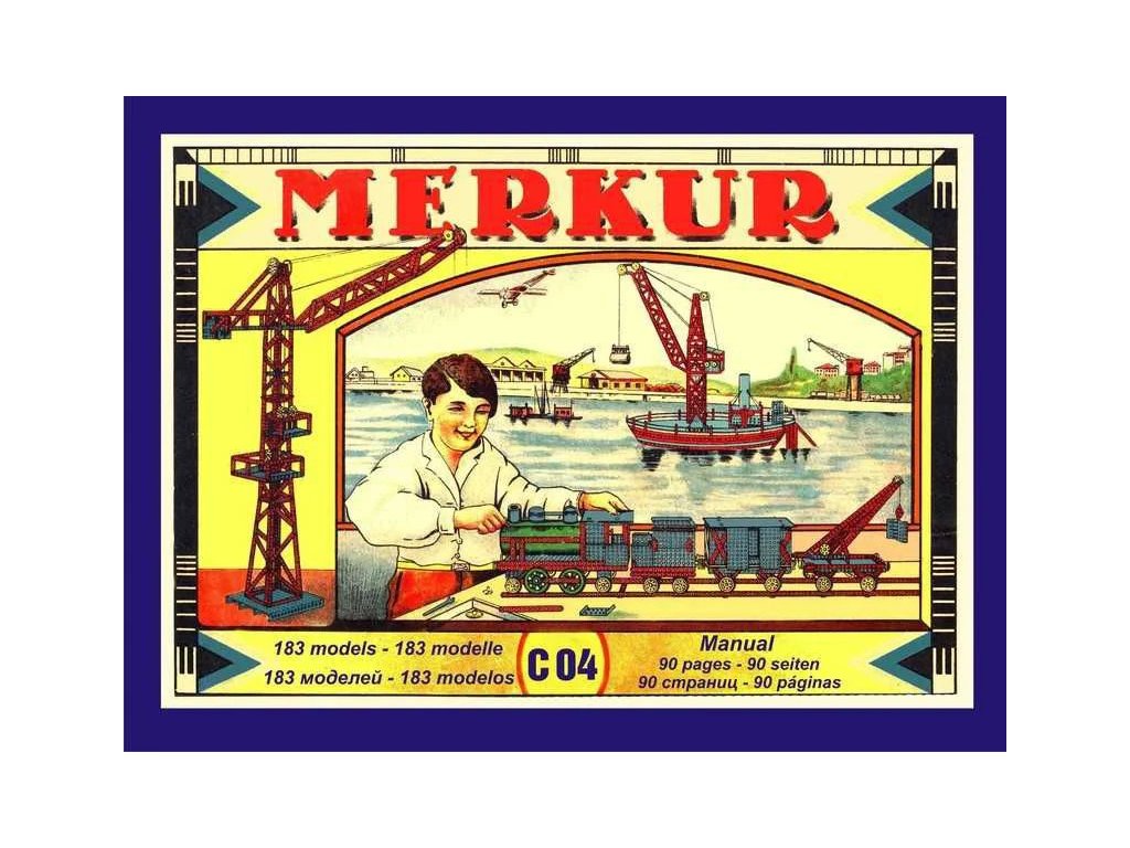 Součástí stavebnice MERKUR CLASSIC C04 je 94-stránková návodová knížka vyrobená ve stylu třicátých let. Velká návodová knížka je koncipovaná pro stavebnice MERKUR Classic C03, C04, C05 - 183 modelů. Návody jsou obrázkové a doplněné původním textem v anglickém, německém, španělském a ruském jazyce. Stavebnice obsahuje 213 dílků. Věk: 6+. Nevhodné pro děti mladší 3 let.
