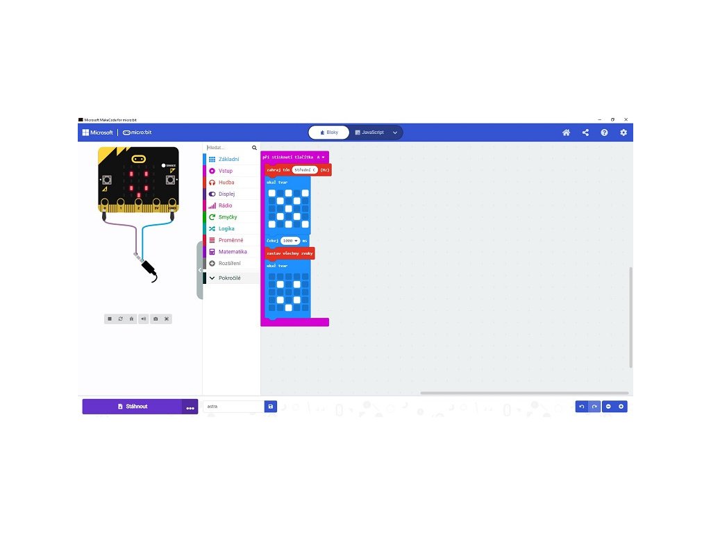 Programování je možné přes počítač prostřednictví programu Make Code. Naprogramované funkce se do jednotky Micro:Bit jednoduše nahrají přes mikro USB kabel.