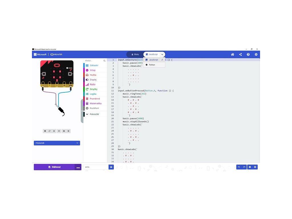 Micro:bit je kapesní počítač velmi vhodný do výuky na základní i střední škole. Umožňuje učit základy programování atraktivně a hmatatelně v různých jazycích: