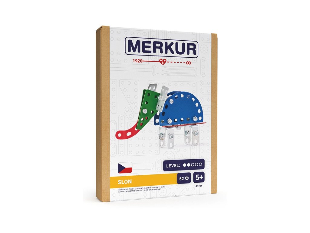 Klasická česká stavebnice Merkur Mini ZOO - Slon. Ponořte se do světa kreativity s kolekcí zvířat Mini ZOO. Model je vhodný také k vystavení. Merkur díly jsou univerzální a tak vás neomezí v jakékoli modifikaci a nápadu. Stavebnici můžete sestavit podle návodu nebo podle svých představ.