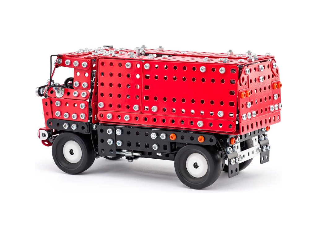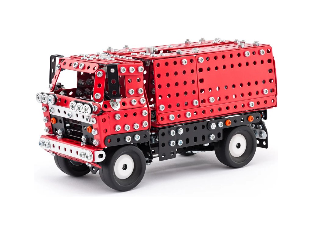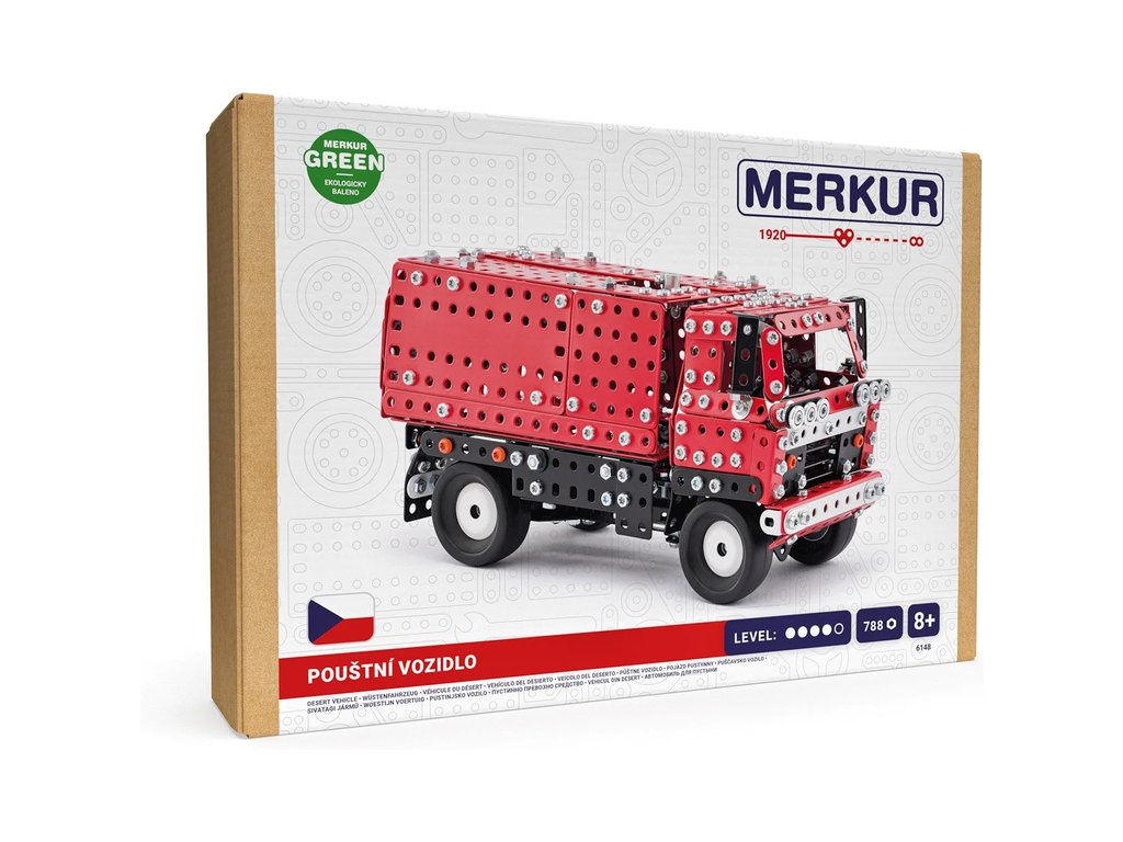 Klasická česká stavebnice Merkur - Pouštní vozidlo 4x4. Ze stavebnice lze sestavit dvě varianty kovového modelu auta – se zakrytou i otevřenou korbou. Merkur díly jsou univerzální a tak vás neomezí v jakékoli modifikaci a nápadu. Stavebnici tak můžete sestavit podle návodu nebo podle svých představ.