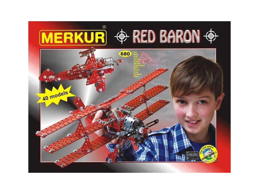 Tradiční česká kovová stavebnice Merkur Red Baron. Sestavte pomocí kovových dílů a šroubů nejznámější letadlo první světové války, se kterým létal Rudý Baron. Dle návodu můžete sestavit až 40 modelů. Konstrukční stavebnice pro rozvoj fantazie a motoriky. Obsahuje 680 dílů, vhodná pro děti od 6 let.