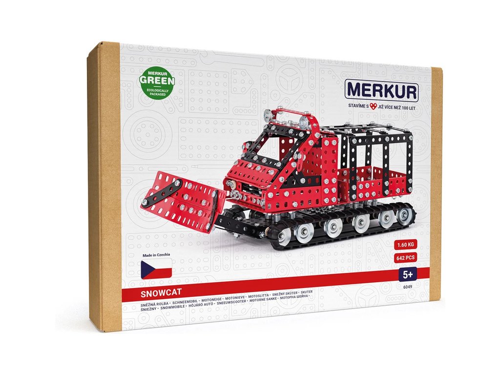 Klasická česká stavebnice Merkur - Sněžná rolba. V balení najdete podrobný návod, Merkur sadu nářadí a unikátní Merkur díly. Merkur díly jsou univerzální a tak vás neomezí v jakékoli modifikaci a nápadu. Stavebnici tak můžete sestavit podle návodu nebo podle svých představ.