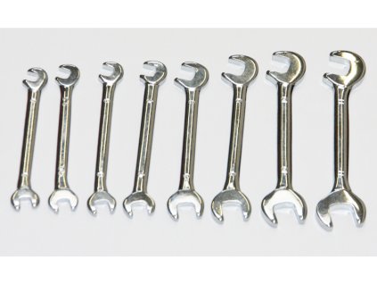 Sada maticových plochých otevřených oboustranných klíčů na šestihranné hlavy 5, 5.5, 6, 7, 8, 9 a 10 mm.