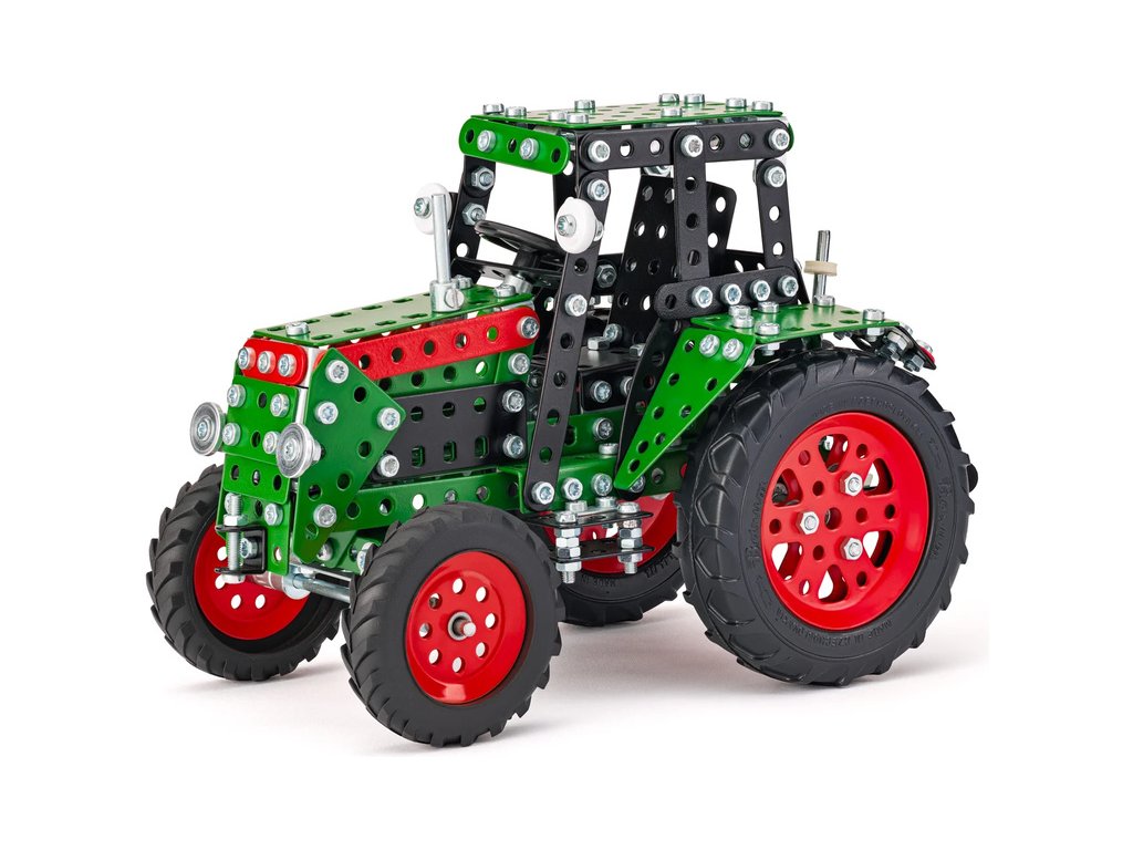 Klasická česká stavebnice Merkur - Traktor zelený. V balení najdete podrobný návod, Merkur sadu nářadí a unikátní Merkur díly. Merkur díly jsou univerzální a tak vás neomezí v jakékoli modifikaci a nápadu. Stavebnici tak můžete sestavit podle návodu nebo podle svých představ.