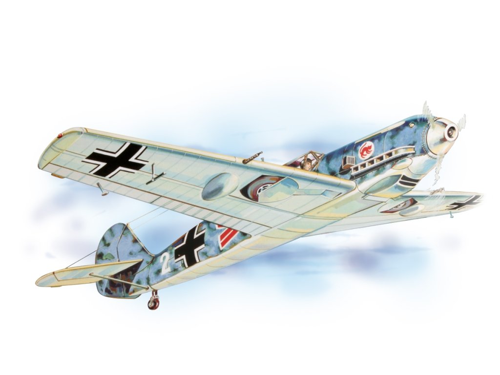 Messerschmitt Bf-109 (nebo správněji Me-109) tvořil po celou II. světovou válku spolu s FW-190 páteř německého stíhacího letectva. Poprvé byl do bojů nasazen již ve španělské občanské válce; průběžně modernizován, vybavován silnějšími motory a výzbrojí, byl pořád smrtelně nebezpečný, ačkoliv s lety nabíral na váze, a jeho původně skvěle vyvážené letové vlastnosti se zhoršovaly...