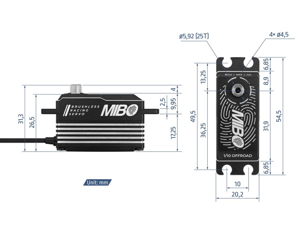 MIBO 1/10 Offroad Low Profile (0.07s/20kg/8.4V) Brushless Servo
