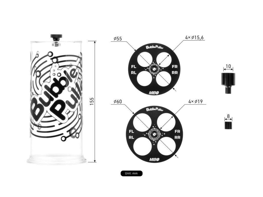 MIBO Elektrický odstraňovač bublin je praktickým nástrojem pro každého RC závodníka. Byl navržen tak, aby stisknutím tlačítka vytvořil vakuum a vytáhl veškeré vzduchové bubliny z oleje ve vašich tlumičích, nebo diferenciálu. Stačí jen připojit zdroj, nebo baterii a jste téměř hotovi.