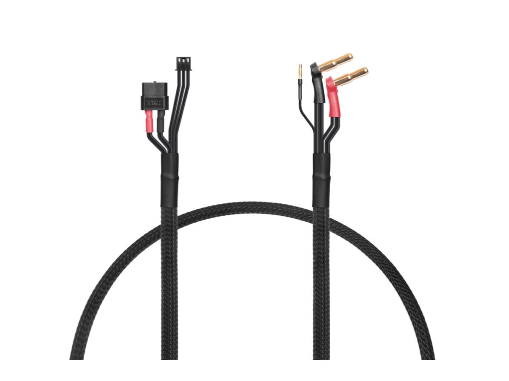 Nabíjecí kabel pro nabíječky s výstupním konektorem XT60 k nabíjení 2S Lipo/Liion Hardcase auto baterií s 4mm nebo 5mm konektorem. Včetně balančního kabelu. Délka 30cm, kabel 14AWG (silový) a 22AWG (balanční).