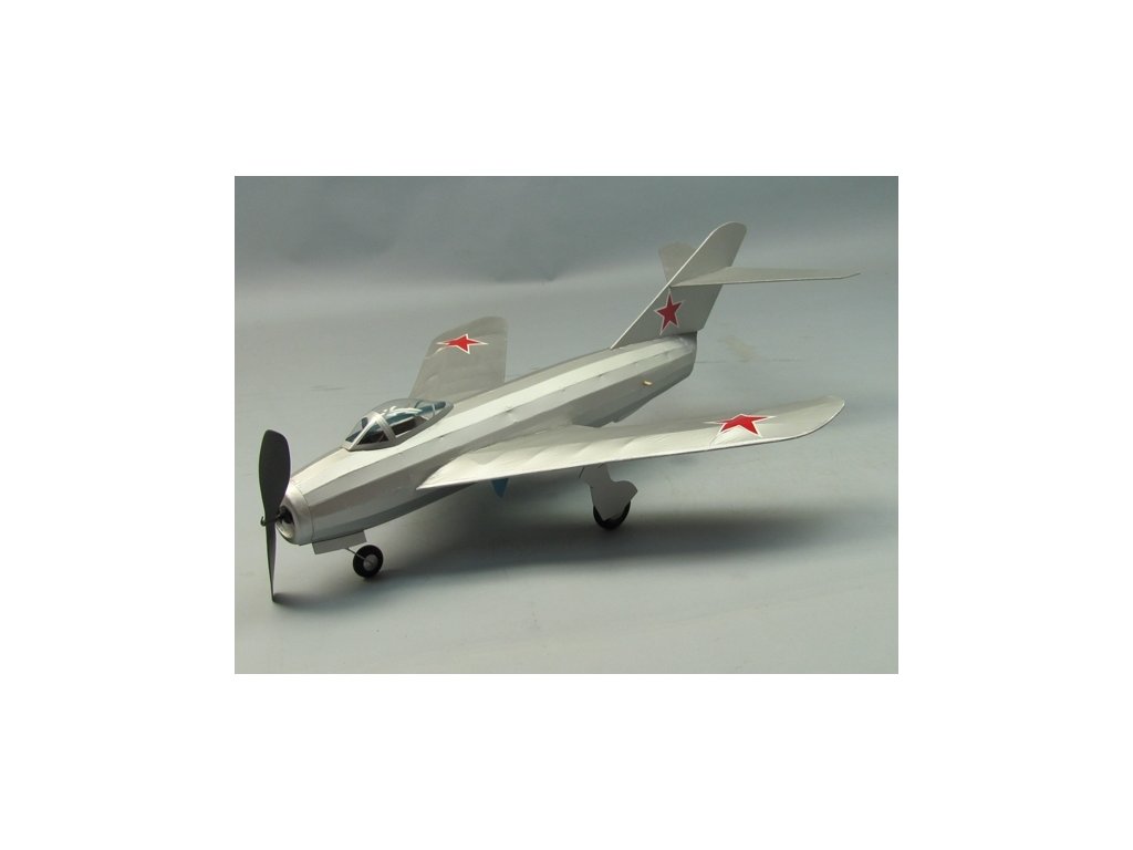 Stavebnice volně létající polomakety sovětskéhokého proudového stíhacího letadla určená pro pohon gumovým svazkem. Model je jednoduché klasické celobalsové konstrukce v rozsypu s laserem vyřezávanými dřevěnými díly, maketovými doplňky z vakuově tvářeného plastu a plastovými díly zhotovenými vstřikovým lisováním. Trup je konstruován pravou minimaketářskou technologií s přepážkami a velkým množstvím podélníků, které umožňují věrně reprodukovat oblé tvary moderních strojů. Staví ve dvou krocích - díky "rozříznutí" ve svislé rovině postavíte přímo na pracovní desce nejprve jednu polovinu trupu, a k ní poté "dolepíte" polovinu druhou. Tak je zajištěno, že i trup komplikovaných tvarů postavíte rovný a souměrný, bez potřeby jakýchkoliv speciálních přípravků. Křídlo je klasické konstrukce z nosníků a žeber, ocasní plochy z balsových lišt a laserem vyřezávaných dílů.