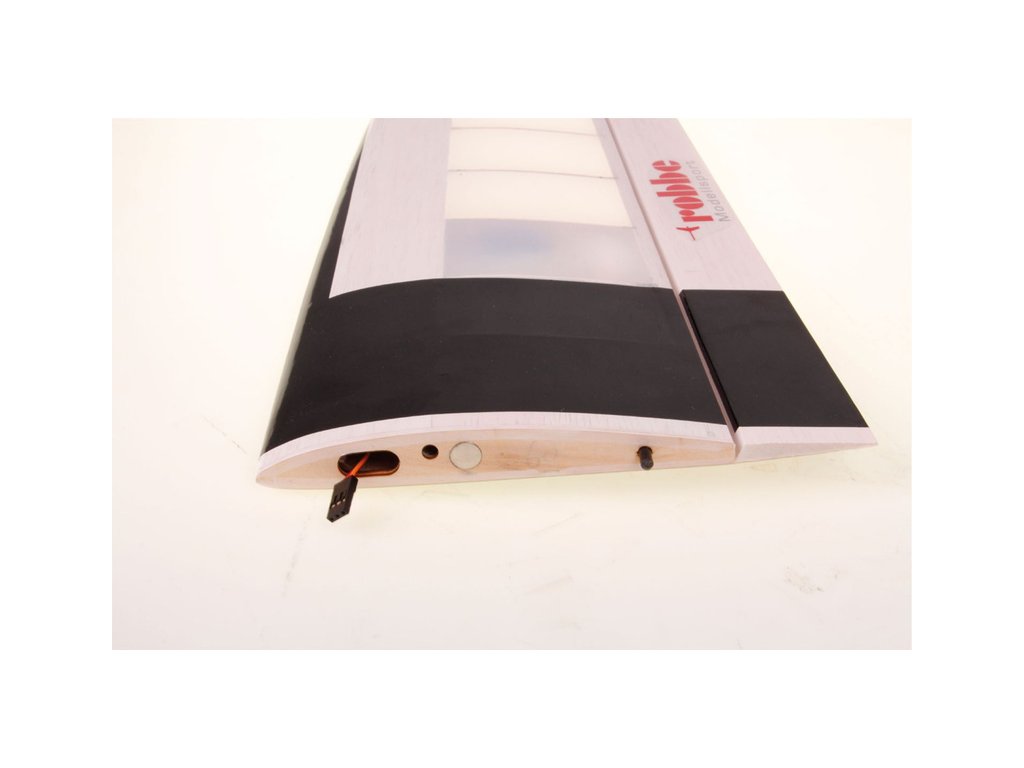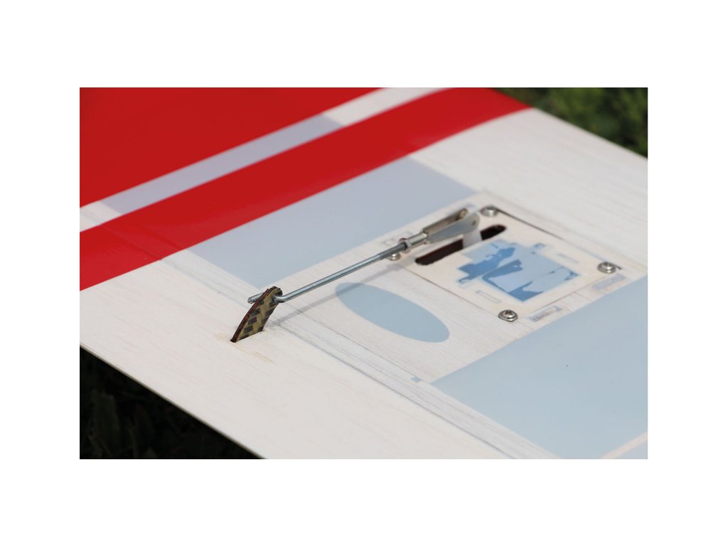 Serva křidélek a klapek jsou uložena uvnitř křídla pod krytem. Páka serva je nad spodní stranou profilu křídla a je spojena táhlem s pákou kormidla.