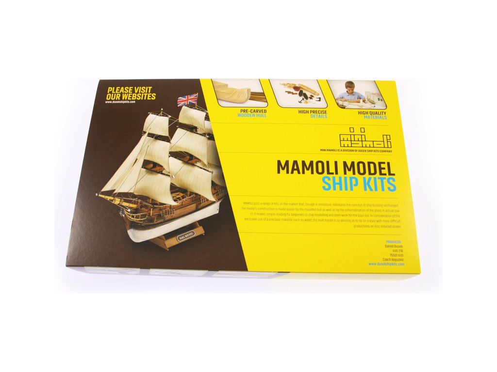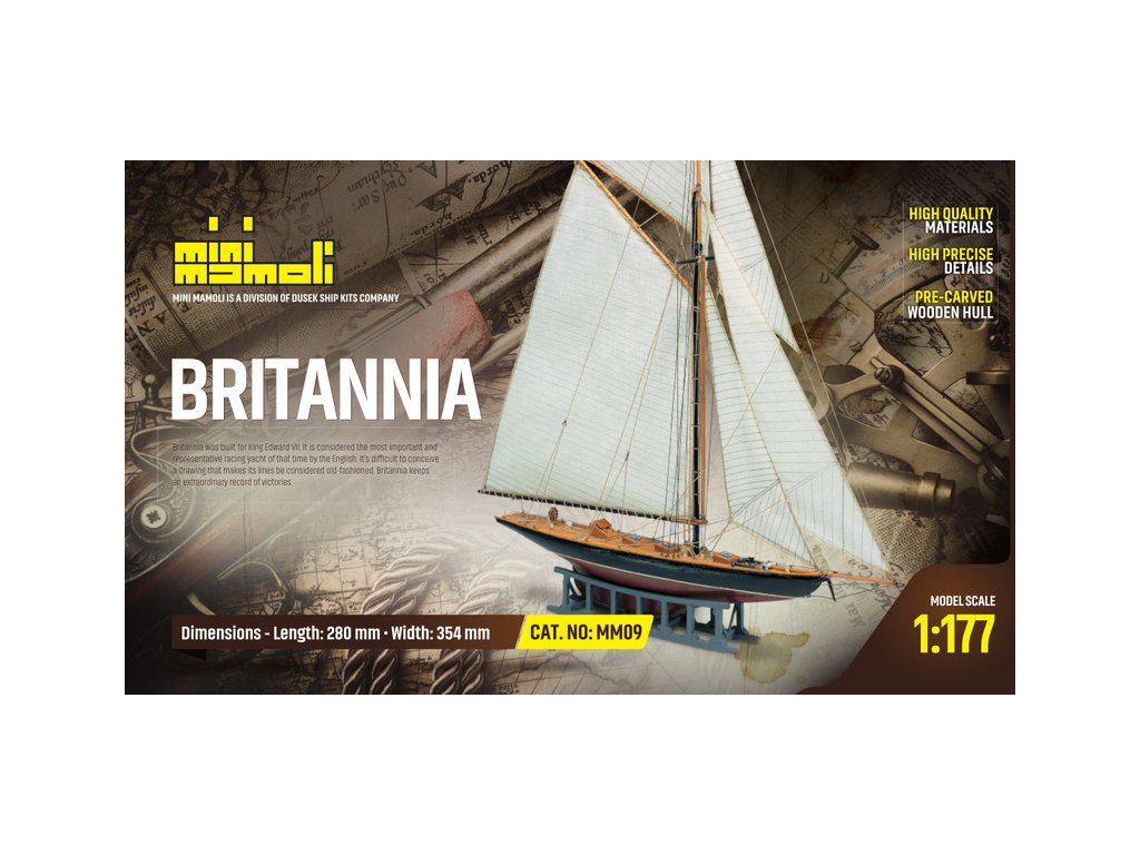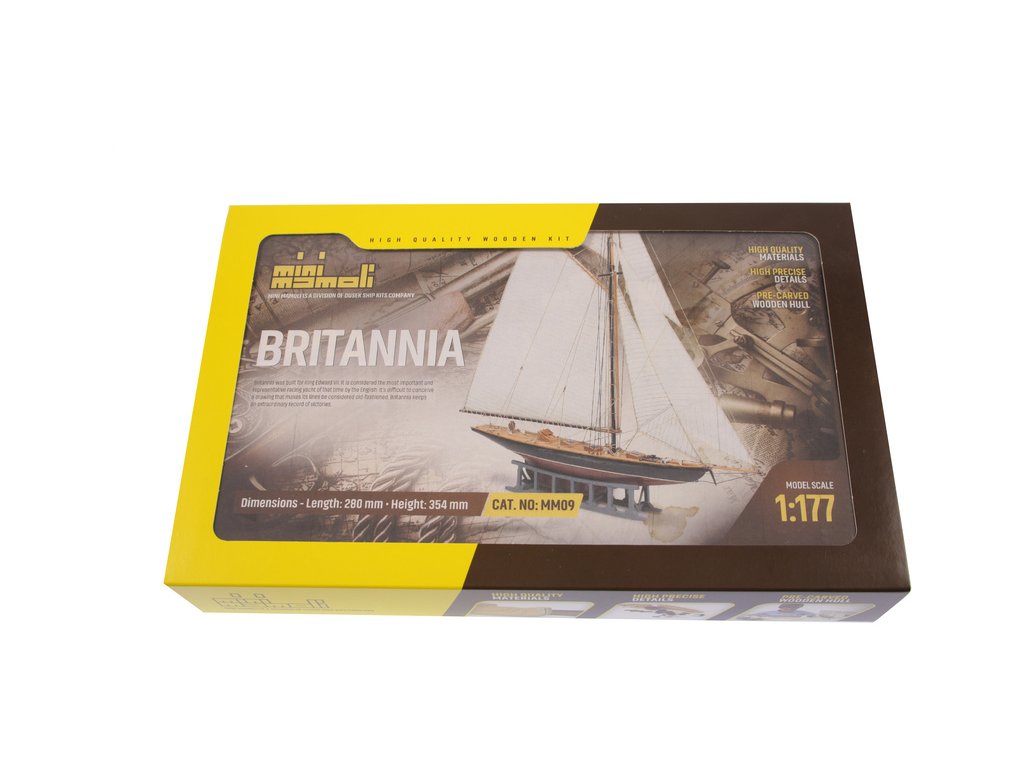 Model lodi Britannia, z řady Mini Mamoli, v měřítku 1:177. Model vhodný pro začínající modeláře. Stavebnice obsahuje vyřezané dřevění díly, kovové díly, stojánek a návod.