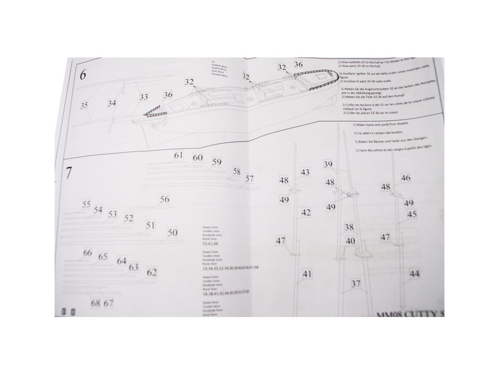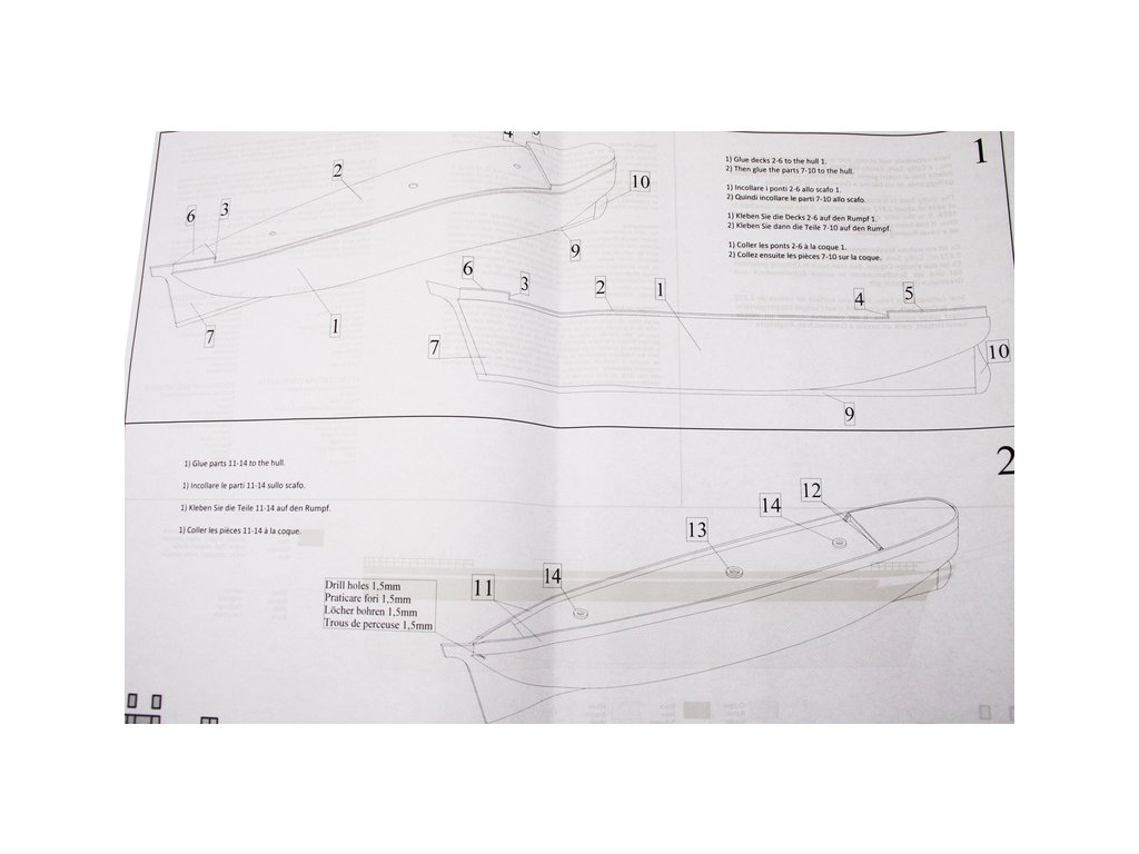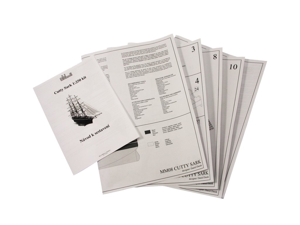 Set obsahuje kompletní sadu výkresové dokumentace modelu v měřítku 1:1 s obrázky jednotlivých detailů. Na výkrese jsou v měřítku nakresleny montážní sestavy, jejich kompletace a to včetně stěžňů a ráhen a způsob vázání lanoví. Vícejazyčný postup stavby rámcově upravuje logické sestavení jednotlivých komponentů.
