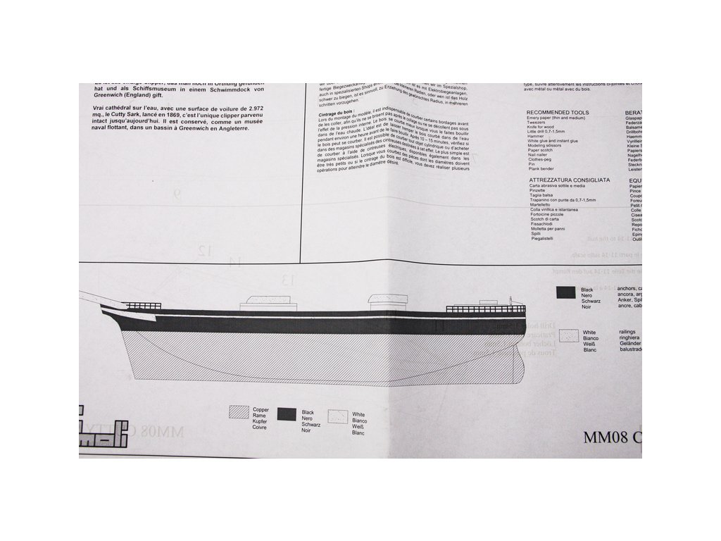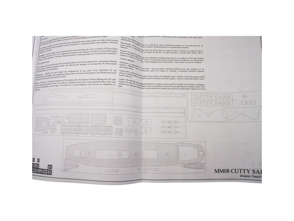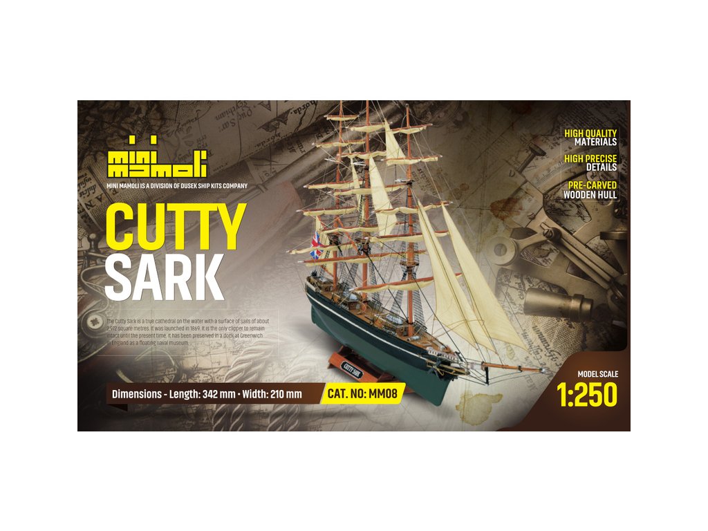 Model lodi Cutty Sark, z řady Mini Mamoli, v měřítku 1:250. Loď je jedna z posledních čajových kliprů. Ve své době byla tato loď nazývána Královnou oceánů. Stavebnice obsahuje vyřezané dřevění díly, kovové díly, stojánek a český návod.