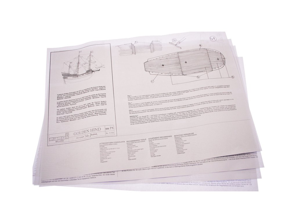 Model lodi Golden Hind, z řady Mini Mamoli, v měřítku 1:110. Golden Hind (Zlatá laň) byla vlajkovou lodí Francise Drakea, na níž obeplul v letech 1577–1580 zeměkouli. Původně se jmenovala Pelican, ale Drake ji během své cesty přejmenoval. Šlo o galeonu spuštěnou na vodu někdy kolem roku 1570. Přesné rozměry lodi nejsou známy, předpokládá se délka 26 m a výtlak 120 tun. Výzbroj mělo tvořit 18 děl. Vhodné pro začínající modeláře. Model lze sestavit během několika hodin. Vhodné od 14 let.