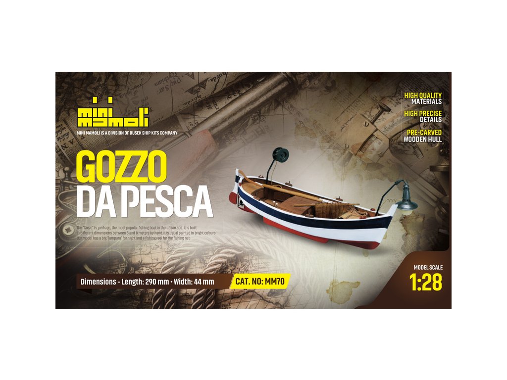 Model lodi Gozzo da pesca, z řady Mini Mamoli, v měřítku 1:28. Model vhodný pro začínající modeláře. Pravděpodobně jedna z nejoblíbenějších rybářských lodí v italských mořích. Člun se staví ručně v délkách od 5 do 8 metrů. Obvykle je vybaven lampou, navijákem a rybářskou sítí.