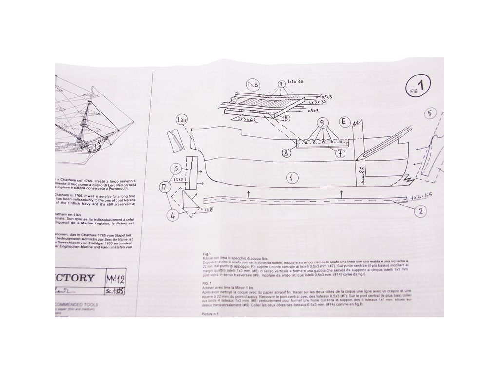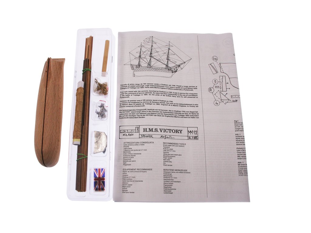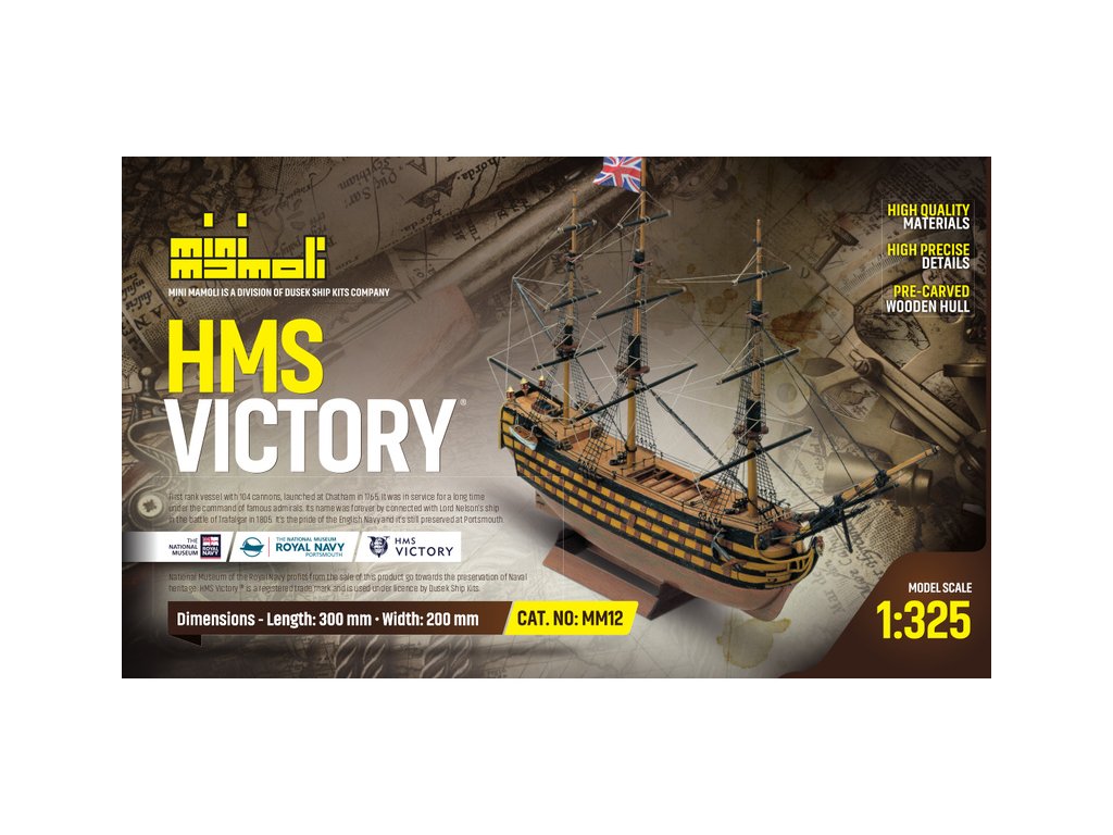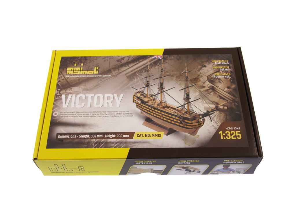 Model lodi H.M.S. Victory, z řady Mini Mamoli, v měřítku 1:325. Victory se zúčastnila bitvy u Trafalgaru 21. října 1805 pod vlajkou admirála Sira Horatio Nelsona, ve kterém Angličané porazili francouzsko-španělskou flotilu. Posádka čítala 850 mužů. Stavebnice obsahuje vyřezané dřevění díly, kovové díly, stojánek a návod.