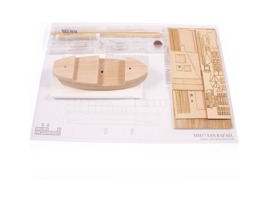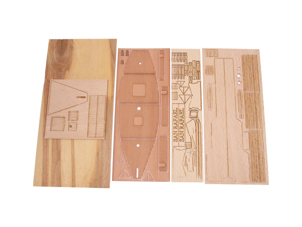 Model lodi San Rafael, z řady Mini Mamoli, v měřítku 1:115, Model vhodný pro začínající modeláře. Stavebnice obsahuje vyřezané dřevění díly, kovové díly, stojánek a návod.