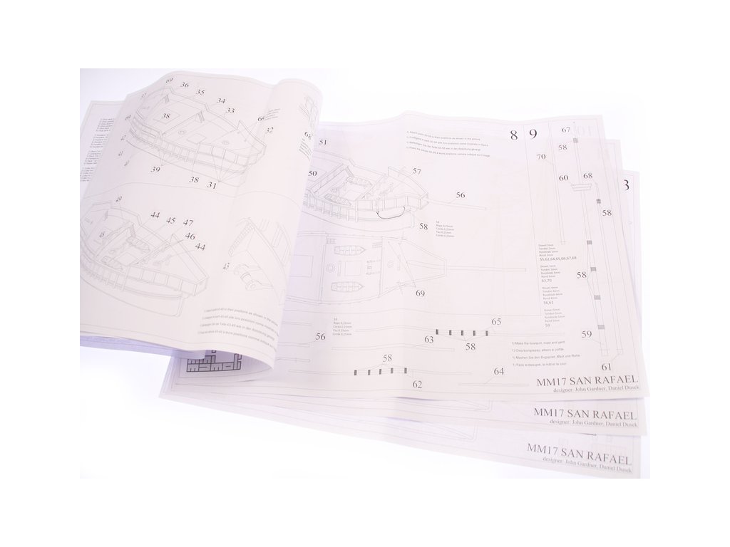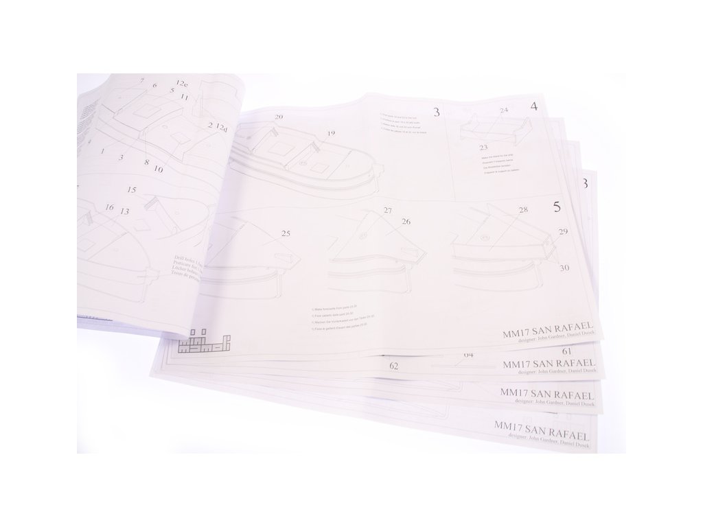 Set obsahuje kompletní sadu výkresové dokumentace s postupem stavby, na výkrese jsou pečlivě označeny díly a je zde i seznam jednotlivých součástí.