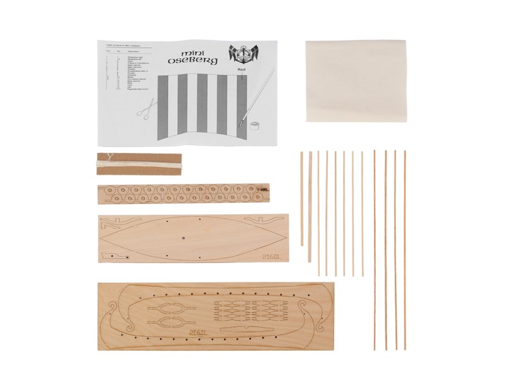 Mini Oseberg má trup jednoduché dřevěné konstrukce z laserem vyřezávaných dílů s dýhovou obšívkou a dřevěnou plaňkovou palubu. Trup je "seříznut" na čáře ponoru - podobně jako u "waterline" plastikových kitů. Stavebnice obsahuje všechny dřevěné díly potřebné pro dokončení modelu, maketové detaily, plachtu atd.