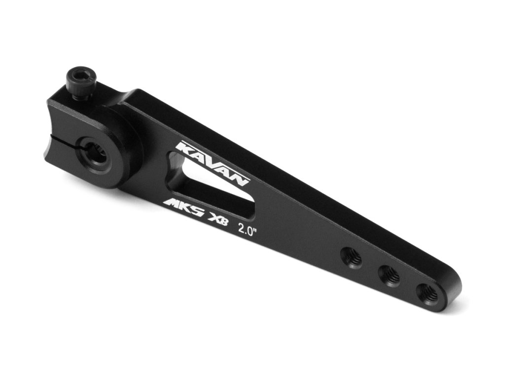 Profesionální servo páka pro serva značky MKS s označením X8 s 8mm výstupním tisícihranem. Vyrobeno z hliníku se závity M3 pro použití kulových čepů. Vzdálenost otvorů od osy serva: 36mm ; 42,5mm ; 51mm.