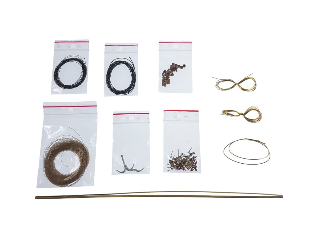 Po otevření víka krabice naleznete dřevěné díly modelu z překližky, sadu lišt, drobné součásti uzavřené v sáčcích, sadu výkresů a manuál.