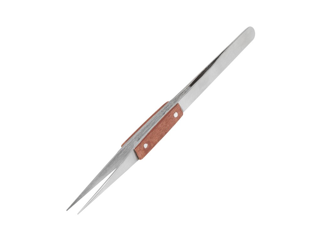 Modelcraft diamantová pinzeta z nerezové oceli pro držení a polohování malých částí při pájení, odolná proti kyselinám. Komfortní fíbrové držáky pro zamezení přenosu tepla při pájení. Precizní hroty s povlakem technického diamantu bezpečně drží menší komponenty. Délka 160mm, šířka celková 10mm, hmotnost 28g.
