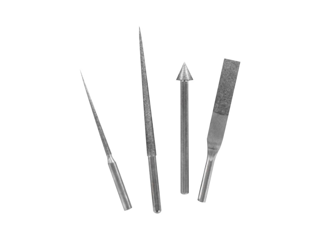 Čtyřdílná sada diamantových jehlových pilníků Modelcraft jsou výborným nástrojem na obrábění velmi tvrdých kovových součástí. Nástroje mají délku 45 - 65 mm a tvary kuželové špičaté dlouhý a krátký, plochý a kuželovitý odjehlovač. Sada je určena pro nástroj SH-PFL6009.
