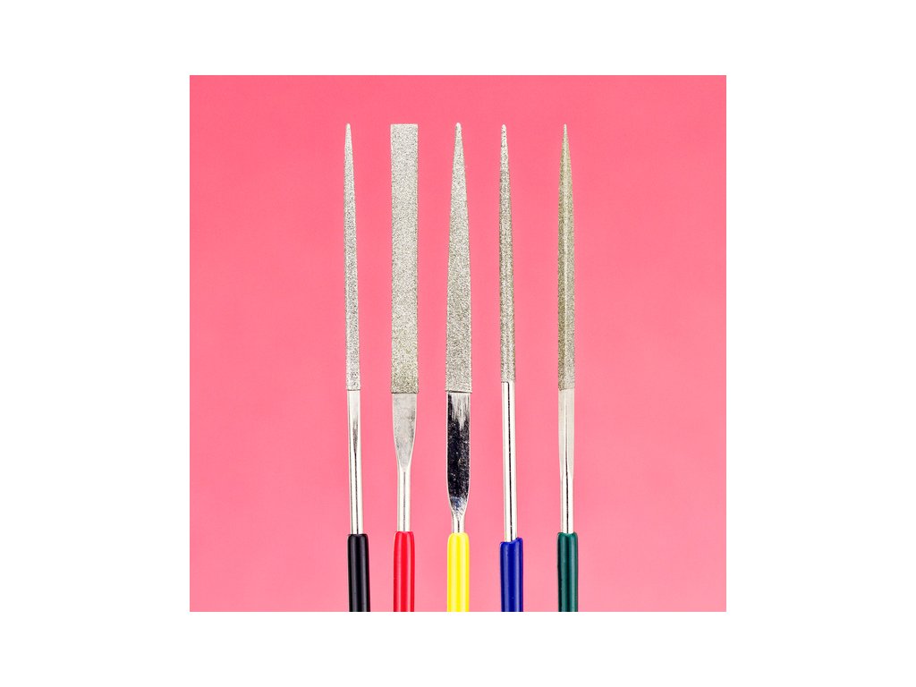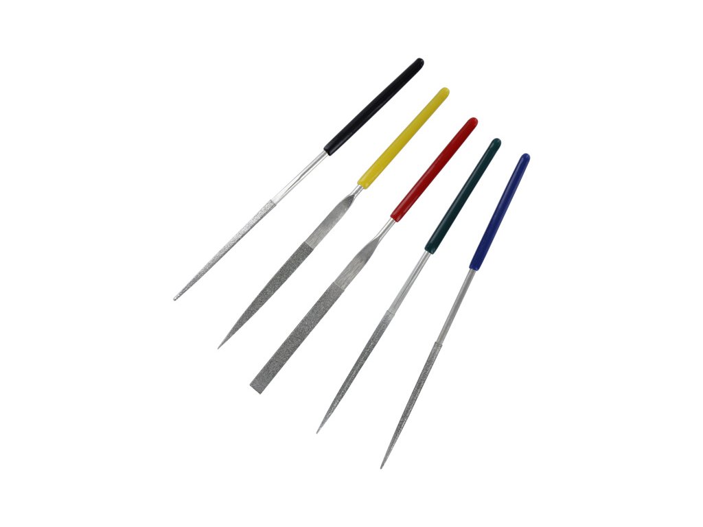 Pětidílná sada diamantové jehlových pilníků Modelcraft s rukojetí jsou výborným nástrojem na kovové tvrdé součásti. Potřebujete zapilovat kov, který běžný pilník nebere? Použijte tento pilník s vrstvou technického diamantu. Délka nástroje 100 mm, 5 profilů, plochý, čtvercový, kulatý, půlkruhový a trojúhelníkový.