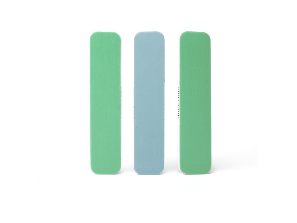 V balení jsou 3 ks flexibilních oboustranných brousítek 90 x 19 x 6 mm se hrubostmi P1500, P2000 a P3000. Tvarem se přizpůsobí i zaobleným plochám. Určeno pro leštění povrchů drobných dílů.