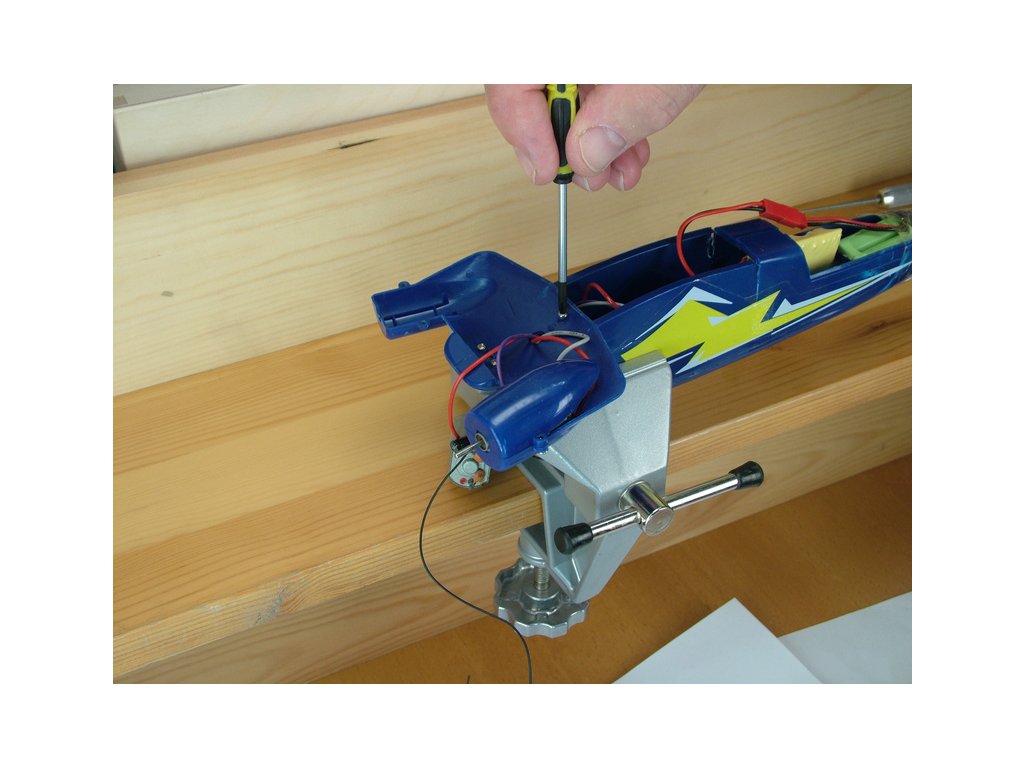 Modelcraft mikro svěrák je určen pro upnutí menších součástí. Hliníková konstrukce, drážkované čelisti, ocelové šrouby, upevnění na desku do tl. 25mm. Šířka čelistí 60mm, roztažení čelistí max. 50mm, hmotnost 382g.